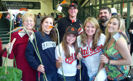 After passing out the flowers, we all gathered in the outfield picnic area for food and drinks while we watched the Orioles and Pirates kick off the season at Ed Smith Stadium. I enjoyed personally seeing so many customers entering the park and a few brides who we had the privilege of providing flowers for their wedding day.