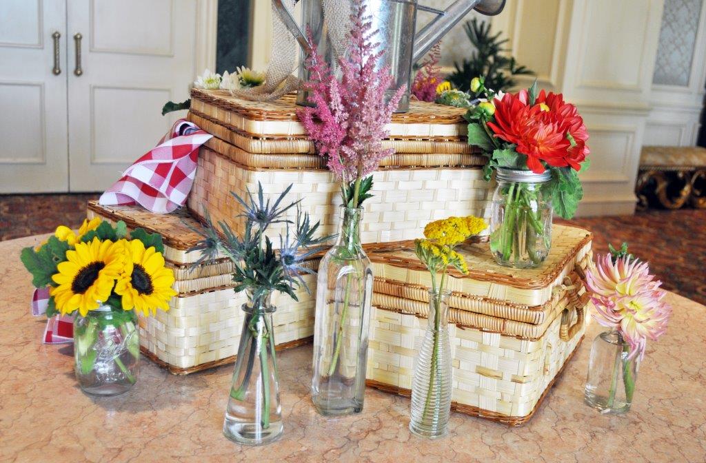 The first luncheon was farm chic themed. The inspiration came from the feeling of being at a farmer’s market with hand-picked flowers. The second luncheon was baseball themed. The centerpieces were designed with a classic ball park feel.
