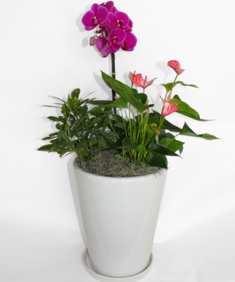 Elevate your space with the timeless beauty of Luxe Plant Garden Collection—a curated trio of designer arrangements that bring together the exotic charm of Phalaenopsis orchids, lush tropical greenery, and sleek ceramic vessels. Each piece is thoughtfully composed to offer its own unique take on sophistication: from cascading orchid stems to striking anthurium accents and layered foliage textures.